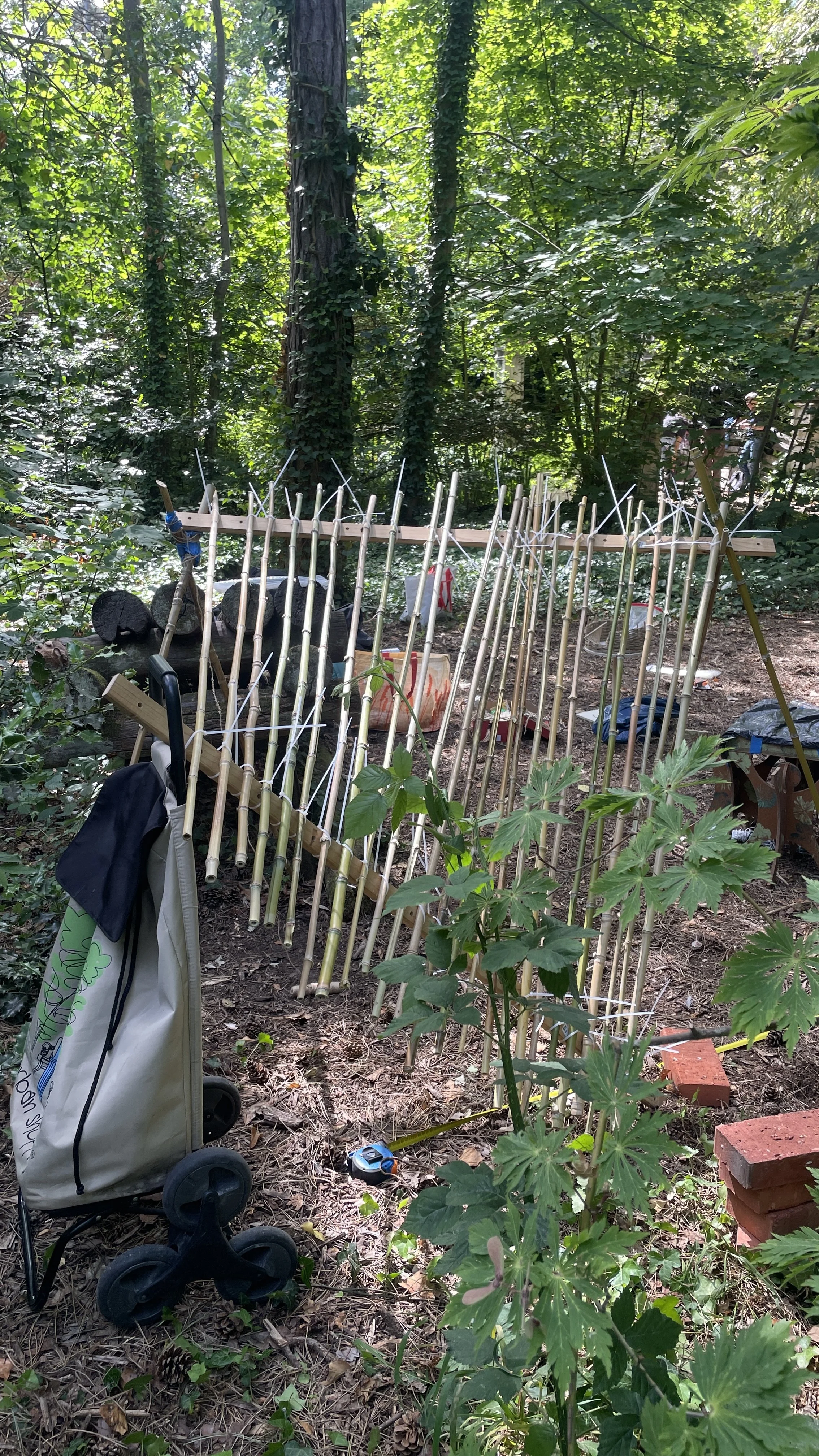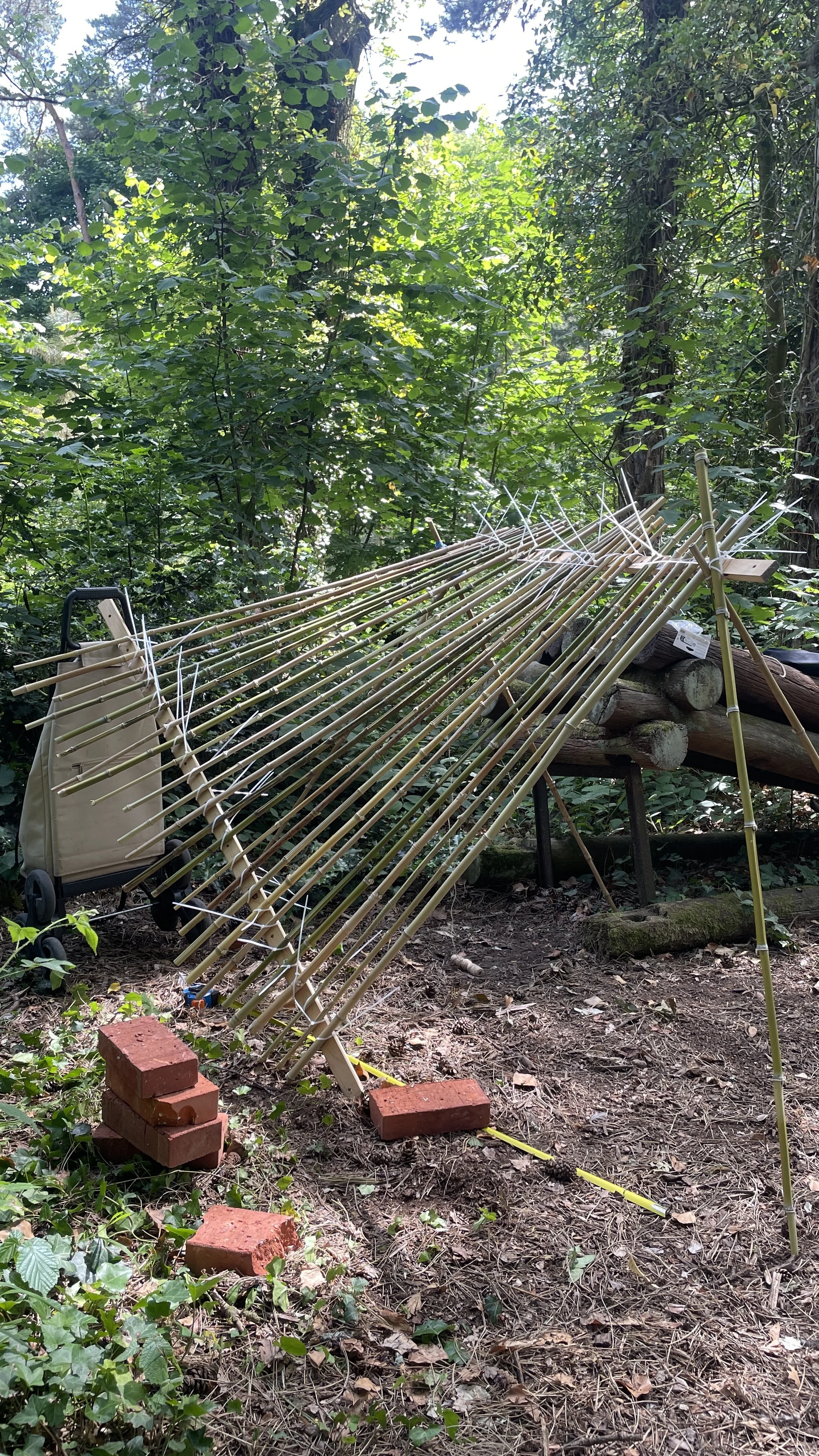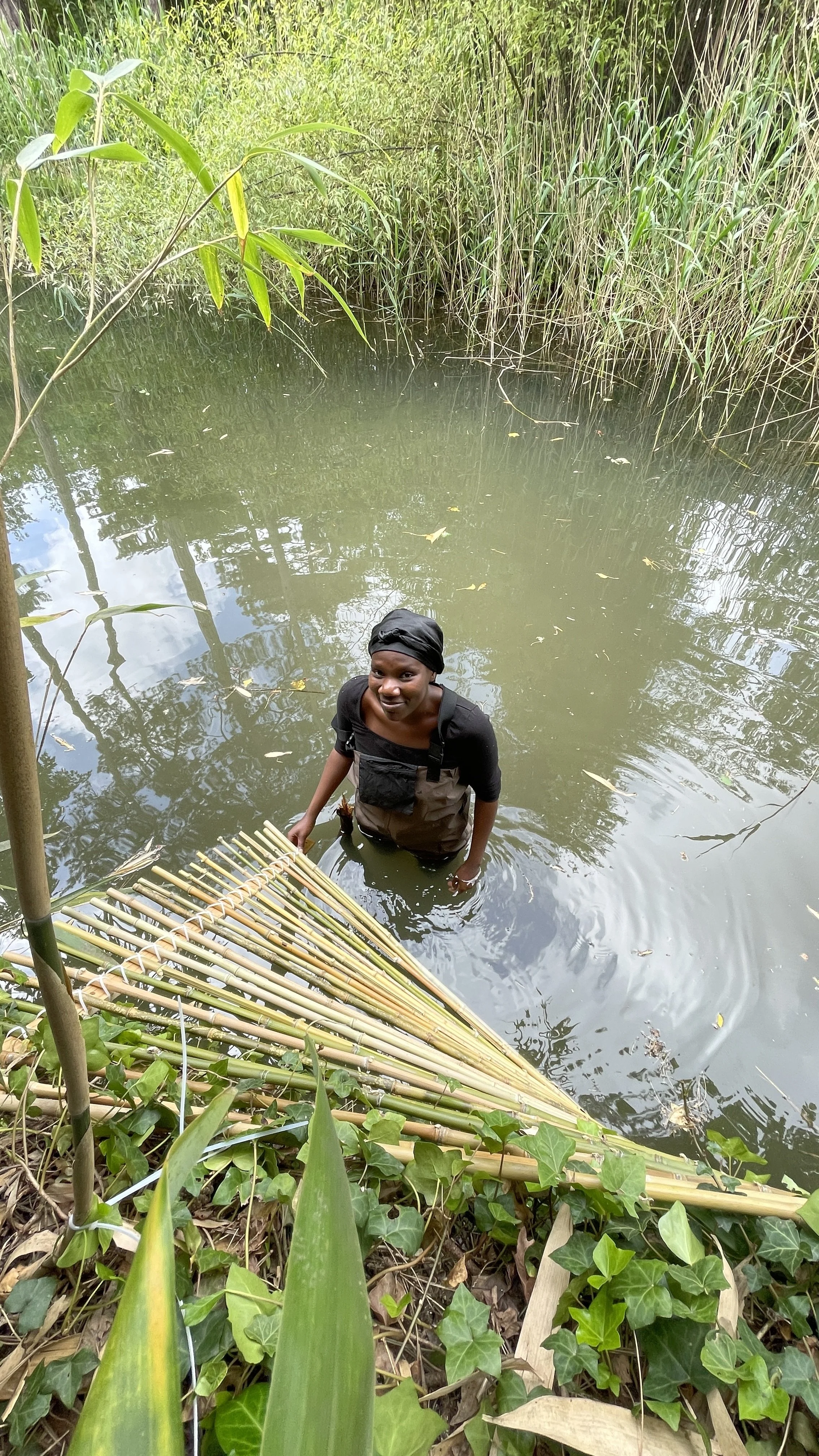 Installée dans l’étang du Jardin d’Agronomie Tropicale de Paris, cette structure en bambou s’intègre dans le paysage végétal environnant, marqué par une forte présence de bambous naturels. La structure relie la berge à la surface de l’eau. Par l’assemblage de tiges verticales et horizontales espacées, la structure devient une affordance tangible : elle "invite" l’animal à grimper, se percher ou se déplacer, en prolongeant ses comportements naturels d’exploration sur des végétaux flottants ou émergents.