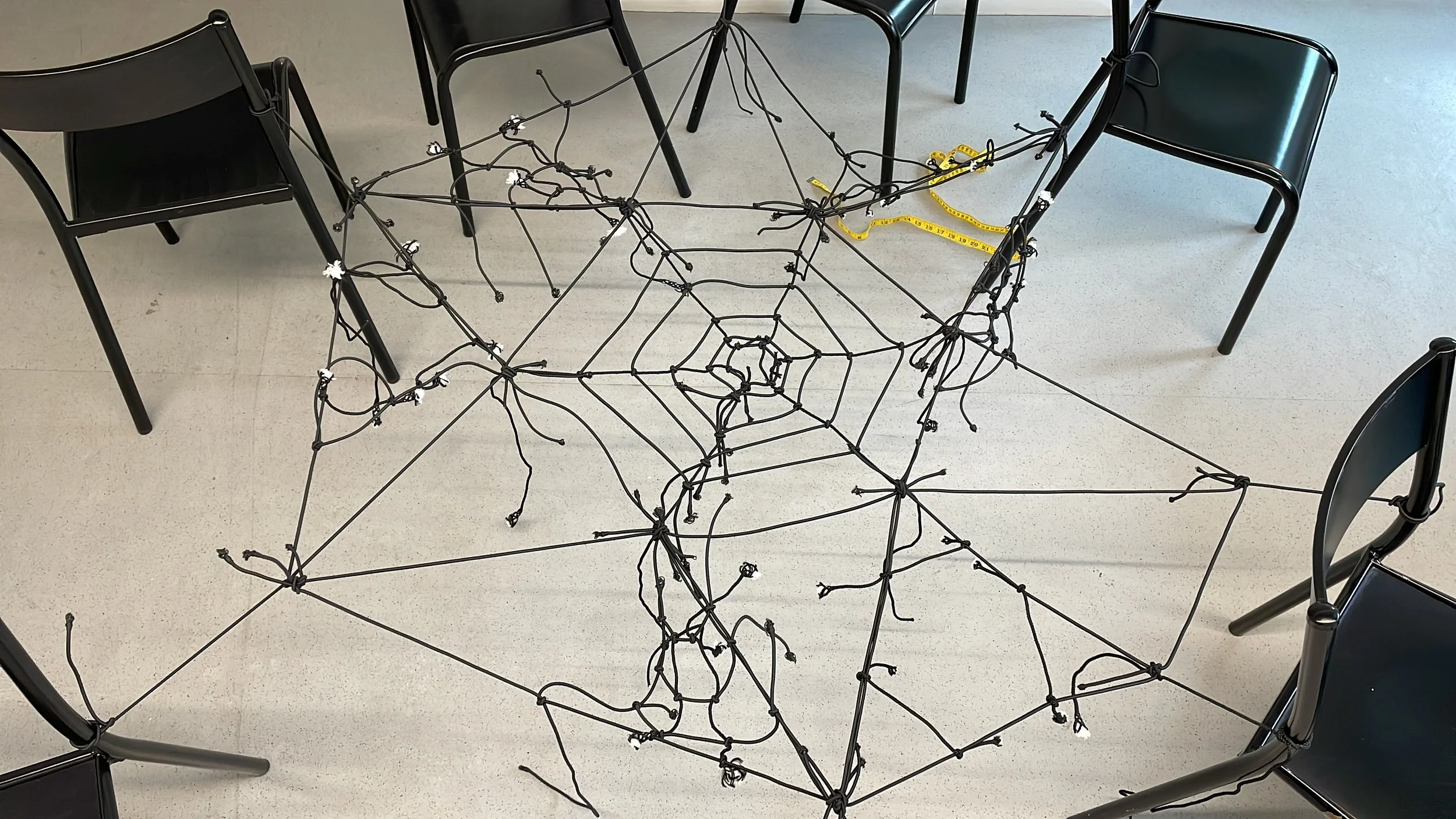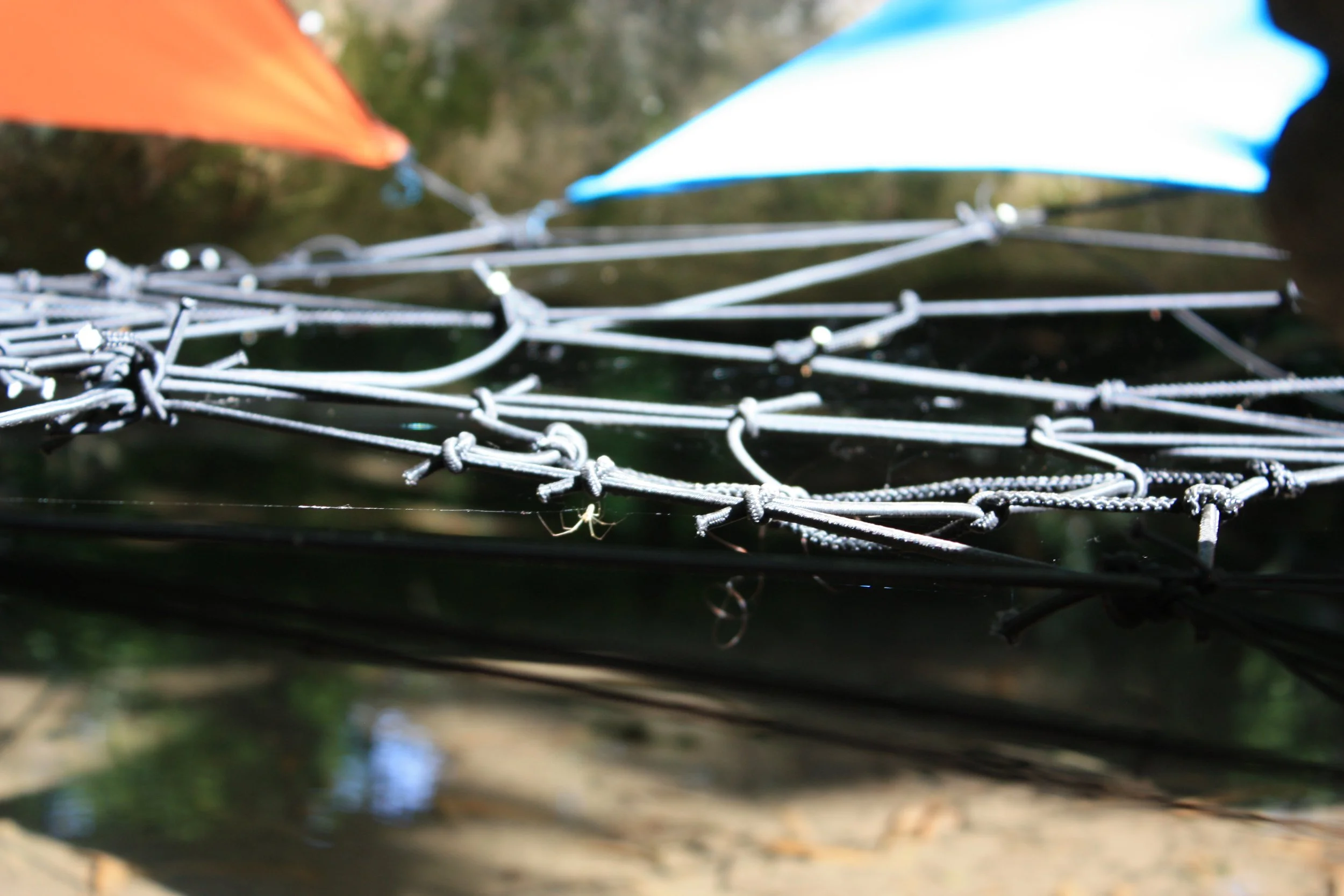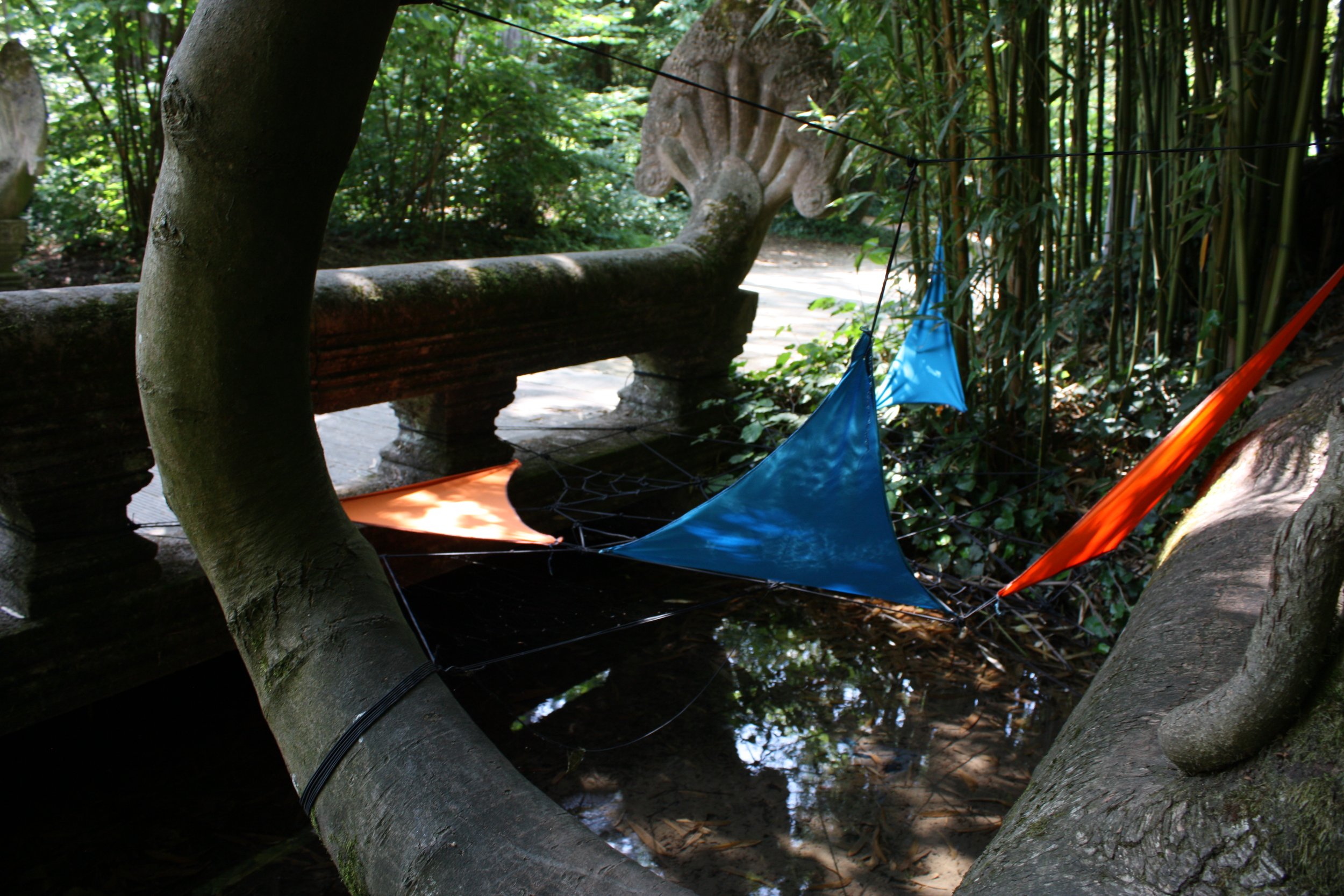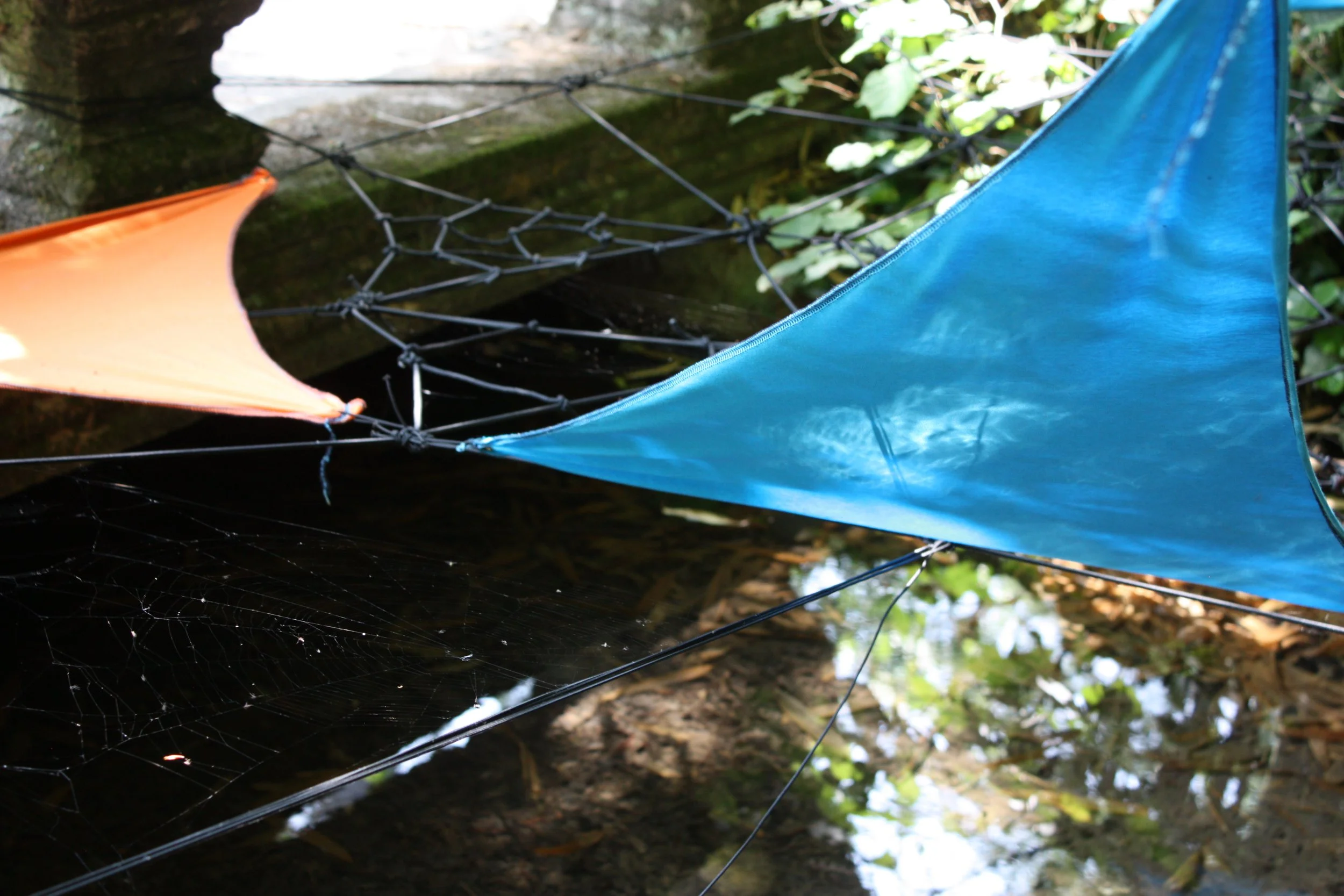 Le jardin suspendu » est une structure en corde extensible inspirée du tissage des araignées. Elle met en valeur la complexité de leur travail à travers trois zones : une toile centrale, des modules triangulaires montrant différentes étapes de construction, et des espaces libres pour laisser l’araignée créer. Bordée de tissus colorés évoquant un entonnoir à insectes, l’installation devient un terrain de chasse naturel. En lien avec le festival des Tropikantes qui se déroule dans le jardin d’agronomie tropicale, elle célèbre l’apprentissage et la découverte. En revalorisant l’image souvent négative de l’araignée, l’œuvre invite à la contemplation, à dépasser nos peurs et à reconnaître la richesse du vivant.